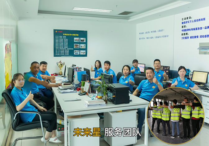 未來星PVC防靜電地板廠家日產(chǎn)量1萬平,護(hù)航萬家匯寫字樓如期交工